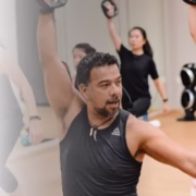 This variation adds a new stimulus to a classic movement by combining elastic resistance, isometric tension, and eccentric control.